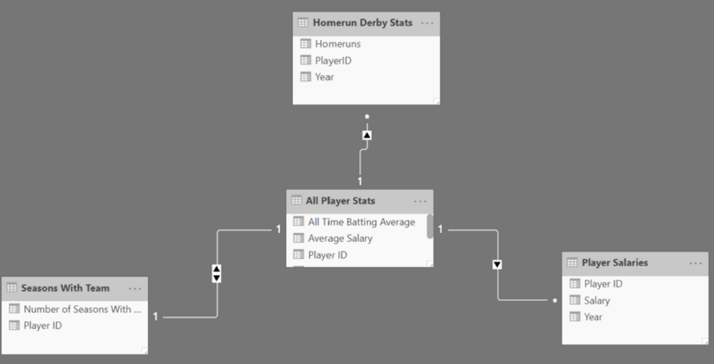 So, I am filling the sports-sized hole by using baseball stats in Power BI to demonstrate pulling data from multiple tables and consolidating it into one table. Some of the data we want to consolidate also has to have some aggregations (which is fancy for "calculations") performed on it.